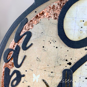 Verder heb ik op het design en op bij de 25 gespetterd met chalkpaint..had ik het snelst bij de hand, wat verdund met water en toen met een kwastje gespetterd.